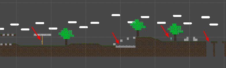 Nachdem nun Spieler und Feinde bereit waren, begann ich mit der Erstellung eines ersten Levels, für das ich mich für ein Farm-Thema entschied. Also machte ich mich an die Arbeit und erstellte alle für das Level erforderlichen Sprites: