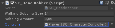 }- Hängen Sie das SC_HeadBobber-Skript an die Hauptkamera an
