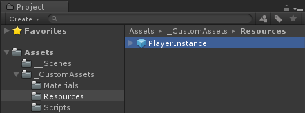 - Speichern Sie die PlayerInstance in Prefab und verschieben Sie sie in den Ordner „Ressourcen“ (Falls kein solcher Ordner vorhanden ist, erstellen Sie einen). Dieser Schritt ist notwendig, um Multiplayer-Objekte über das Netzwerk erzeugen zu können.