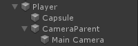 - Erstellen Sie ein neues GameObject, nennen Sie es "CameraParent", verschieben Sie es in das "Player"-Objekt und ändern Sie seine Position in (0, 1,64, 0).