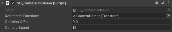 }- Hängen Sie das SC_CameraCollision-Skript an die Hauptkamera an
